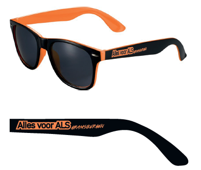 Deze mooie zonnebril met het logo van AllesvoorALS Gramsbergen kan uiteraard zowel in de zomer als in de winter gedragen worden.