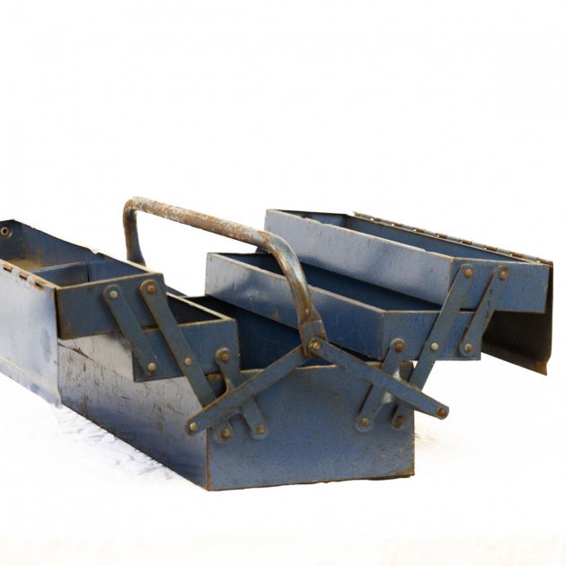 De sporen van gebruik maken deze ouderwetse gereedschapskist helemaal af!