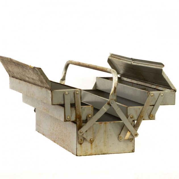 De sporen van gebruik maken deze ouderwetse gereedschapskist helemaal af!