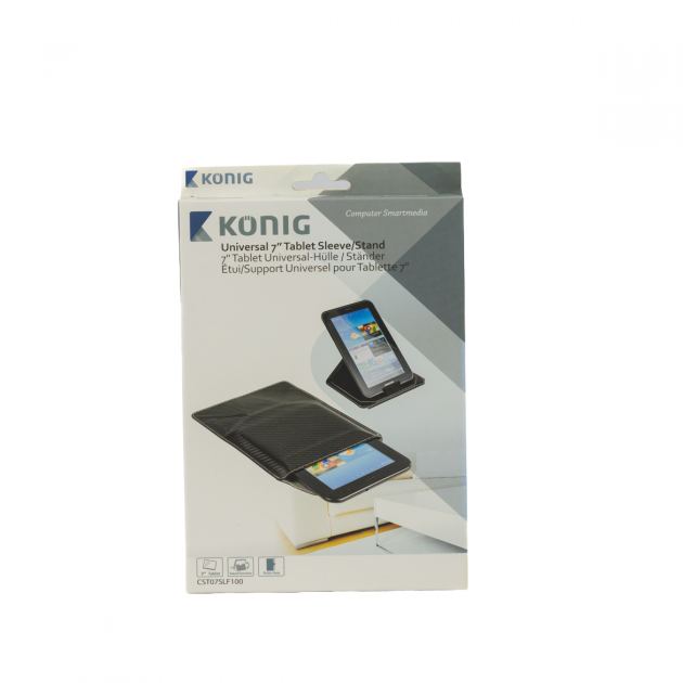 Beschermhoes/standaard, geschikt voor bijna alle 7"-uitvoeringen. De hoes kan gebruikt worden als standaard met twee verschillende posities en een stylus-lus.